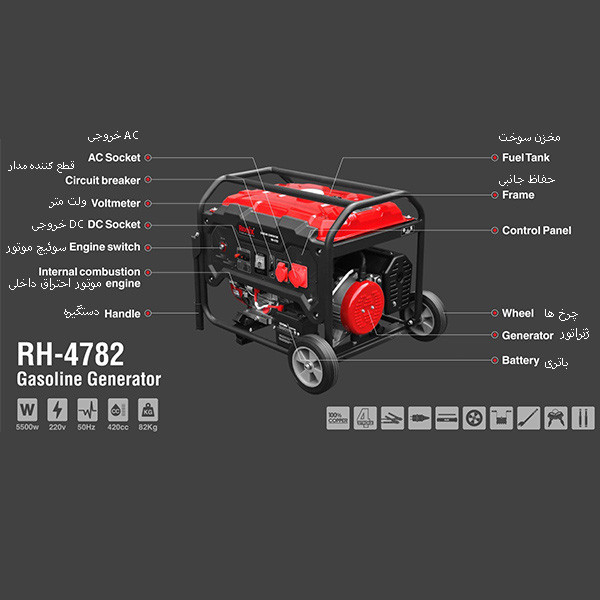 ویژگیهای موتور برق بنزینی ۵۵۰۰ وات رونیکس Ronix مدل RH4782: