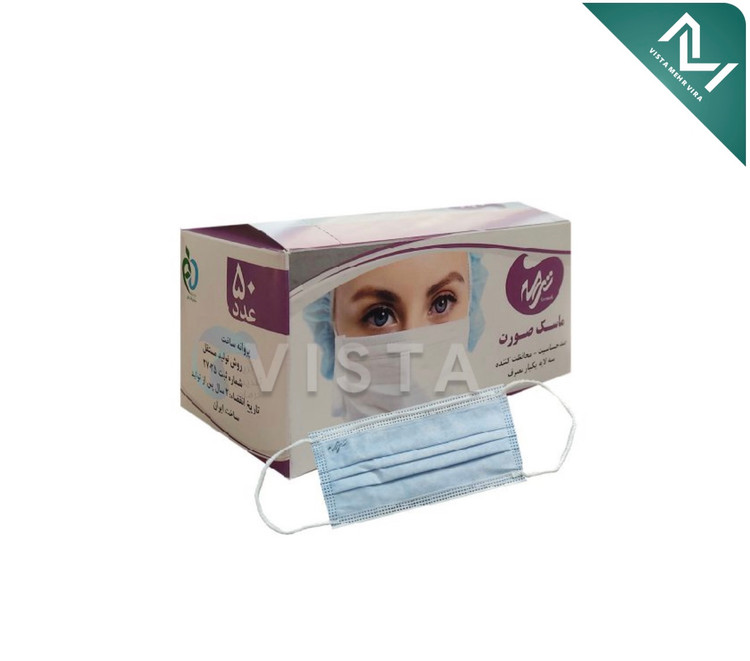 ماسک سه لایه استاندارد : لایه اول اسپان باند، لایه میانی (دوم) ملت بلون، لایه سوم اسپان باند. ماسک ها تمام پرس بوده و دارای فیکسر بینی می باشند. دارای پروانه ساخت بهداشت از وزارت بهداشت، درمان و آموزش پزشکی به شماره : 50982475 در هر بسته 50 عدد ماسک قراردارد. ماسک ها دارای اندازه استاندارد بوده و سایز آنها 9.5X17.5 می باشد. ماسک های تولید شده فاقد هرگونه الیاف شیشه یا لاتکس می باشد. کش ماسک ها ضد حساسیت میباشد.
