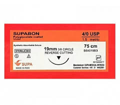 نخ بخیه ویکریل سوپا یک نخ بخیه جراحی استریل قابل جذب مصنوعی است . که از پلیمر پلی گلیکولیک اسید ساخته شده است.نخ سوپابن(ویکریل) ازمحصولات نخ و سوزن جراحی است. در اندازه ها و طول های مختلف، متصل به سوزن فولادی ضد زنگ با انواع و اندازه های مختلف وجود دارد .جزئیات کامل در کاتالوگ مربوطه ذکر شده است.
