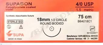 نخ بخیه ویکریل سوپا یک نخ بخیه جراحی استریل قابل جذب مصنوعی است . که از پلیمر پلی گلیکولیک اسید ساخته شده است.نخ سوپابن(ویکریل) ازمحصولات نخ و سوزن جراحی است. در اندازه ها و طول های مختلف، متصل به سوزن فولادی ضد زنگ با انواع و اندازه های مختلف وجود دارد .جزئیات کامل در کاتالوگ مربوطه ذکر شده است.