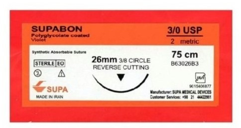 نخ بخیه ویکریل سوپا یک نخ بخیه جراحی استریل قابل جذب مصنوعی است . که از پلیمر پلی گلیکولیک اسید ساخته شده است.نخ سوپابن(ویکریل) ازمحصولات نخ و سوزن جراحی است. در اندازه ها و طول های مختلف، متصل به سوزن فولادی ضد زنگ با انواع و اندازه های مختلف وجود دارد .جزئیات کامل در کاتالوگ مربوطه ذکر شده است.
