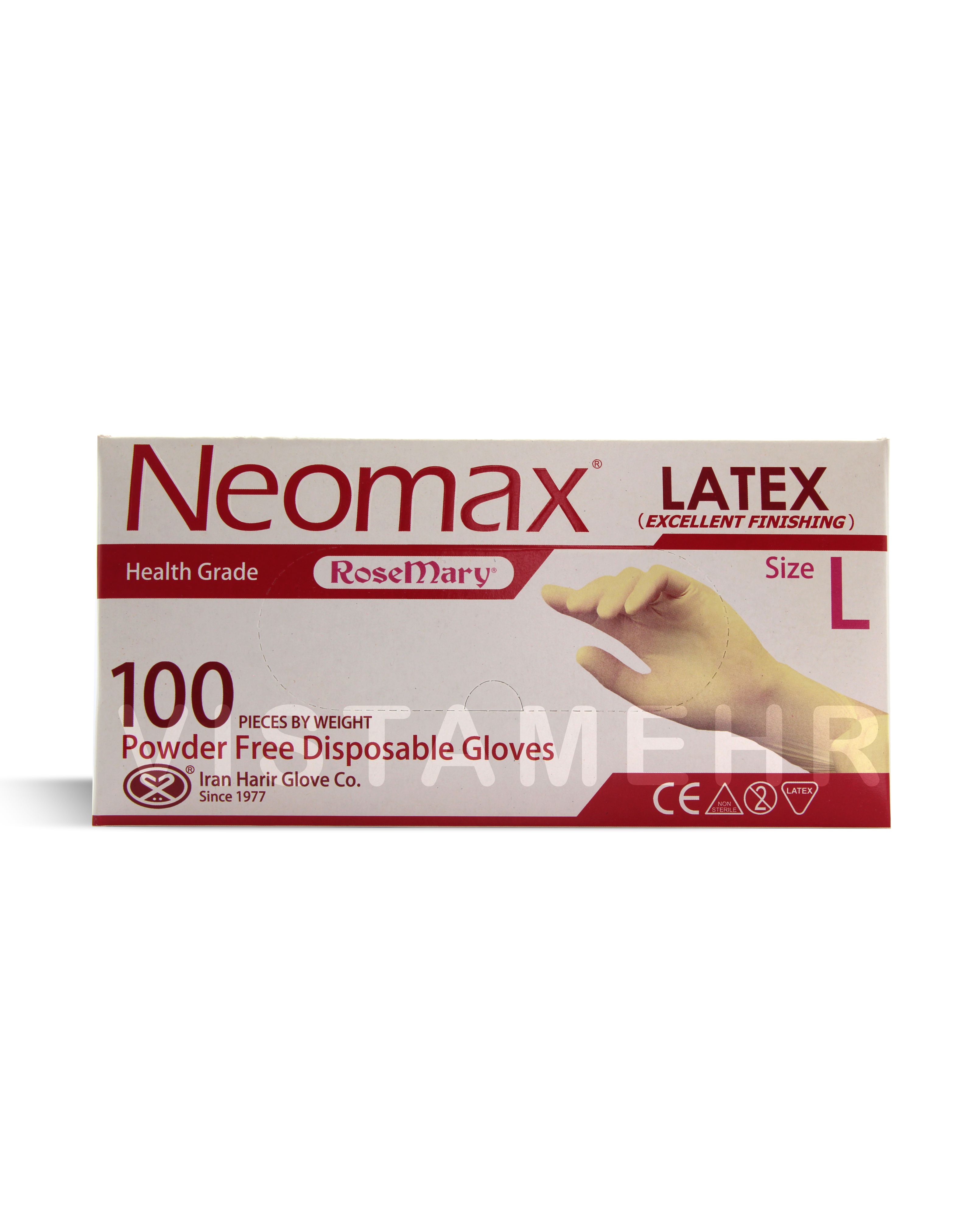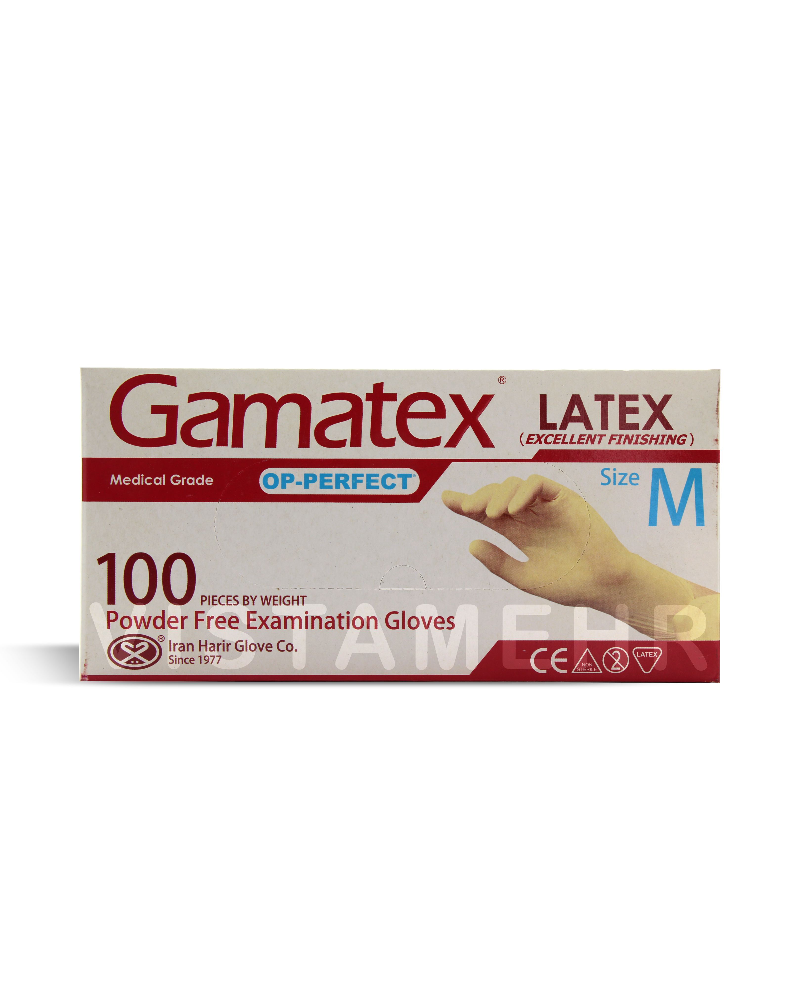 دستکش لاتکس بدون پودر 100 عددی حریر ایران (اوپی پرفکت/گاماتکس/نئومکس)