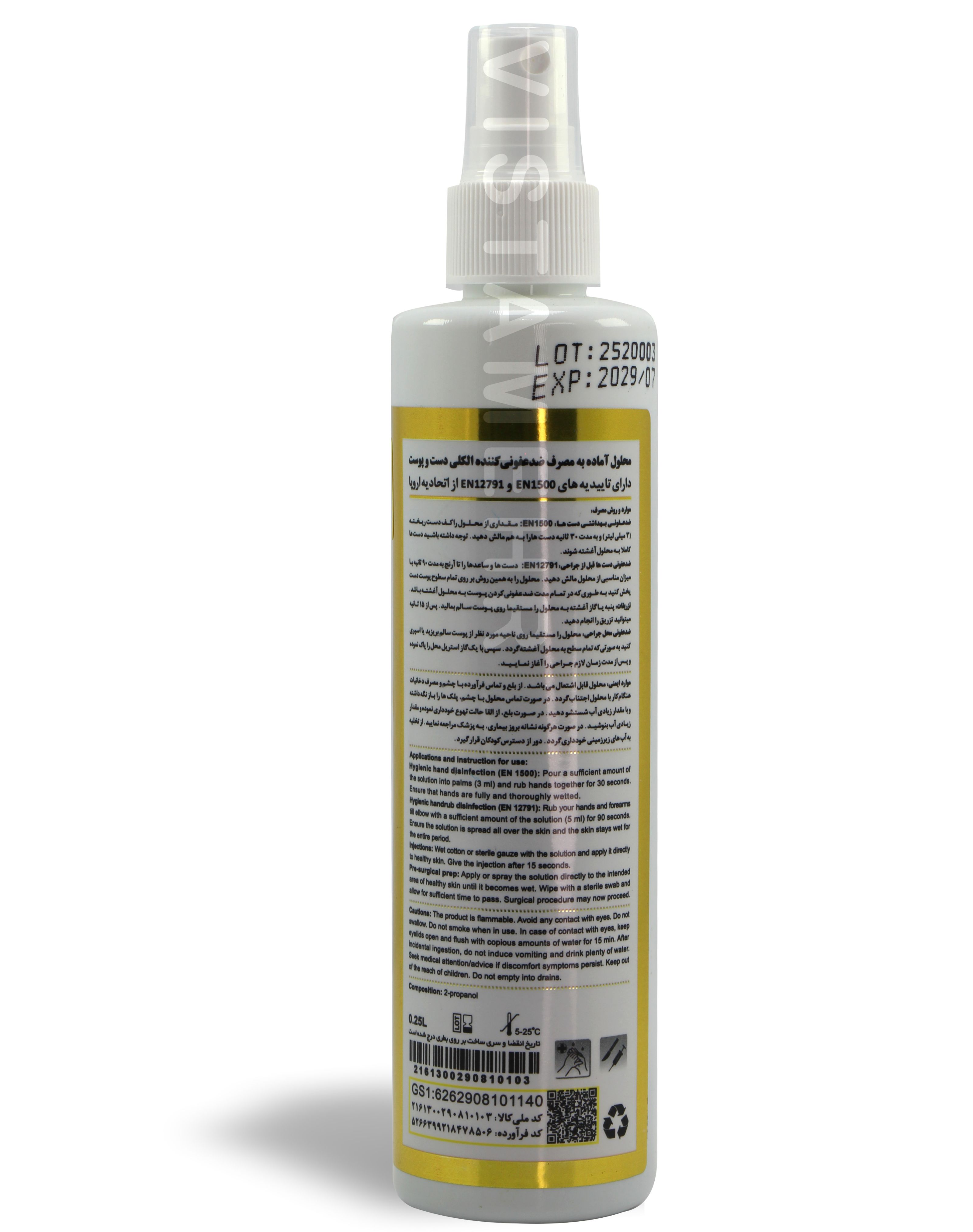 اسپری محلول ضد عفونی کننده الکلی دست و پوست سانوسید 250 سی سی